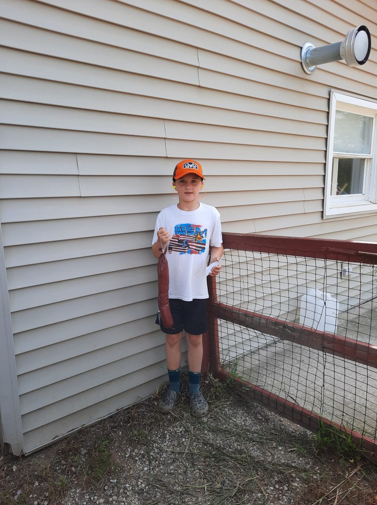 Two younger kids, Johnny Shepherd (below) and Carson Lambrecht (next pair of photos) were our champions for the day, with Johnny winning a grand total of 10 sausages.