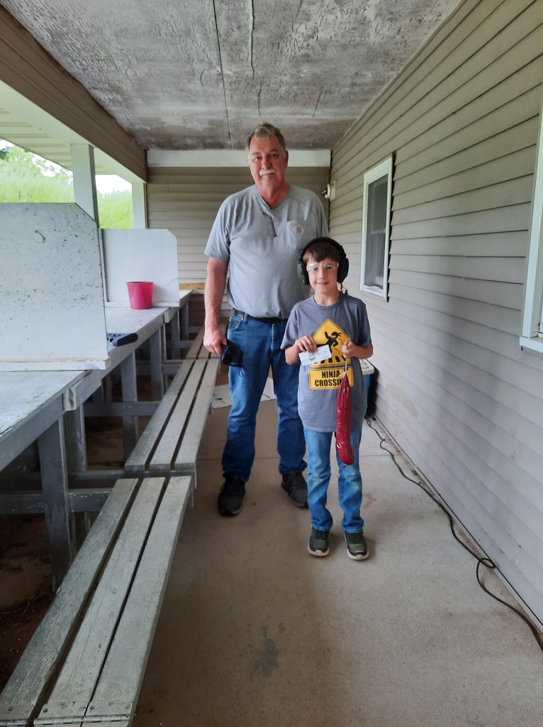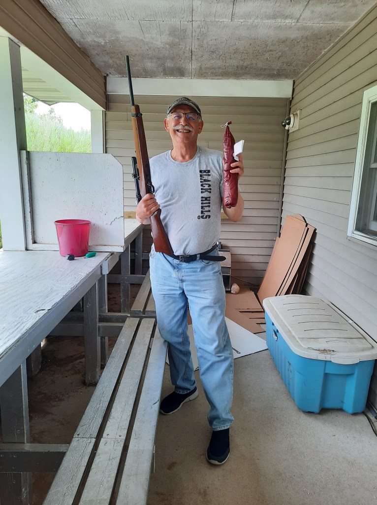 The next 2 photos are of Carson who shot the string for a grand total of 5 sausages, using a .22 rifle with scope.