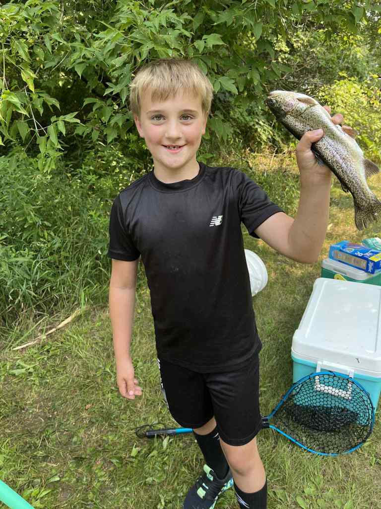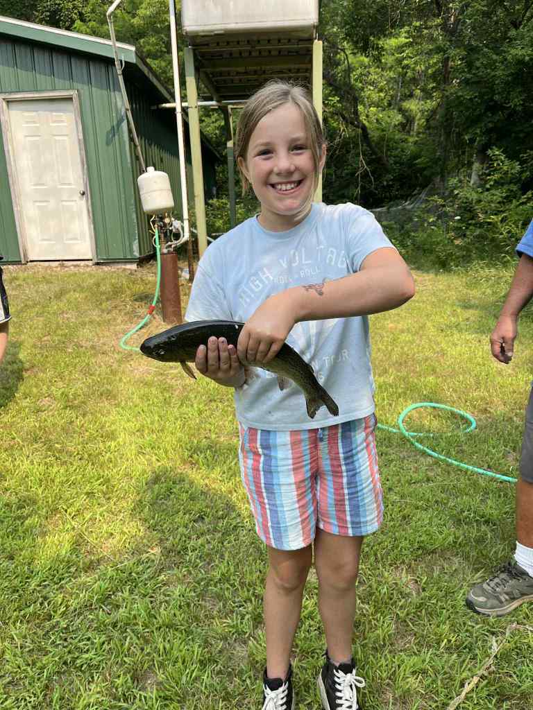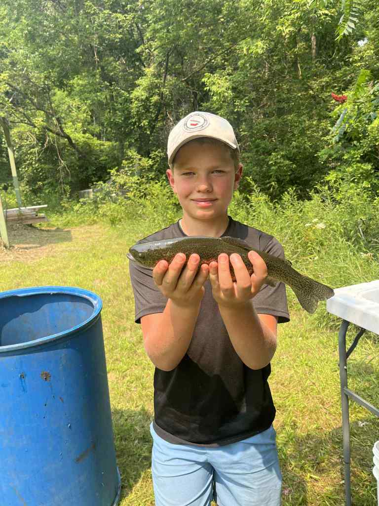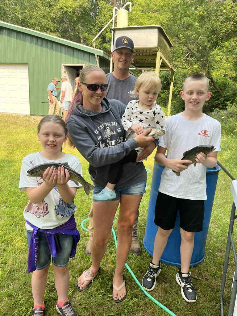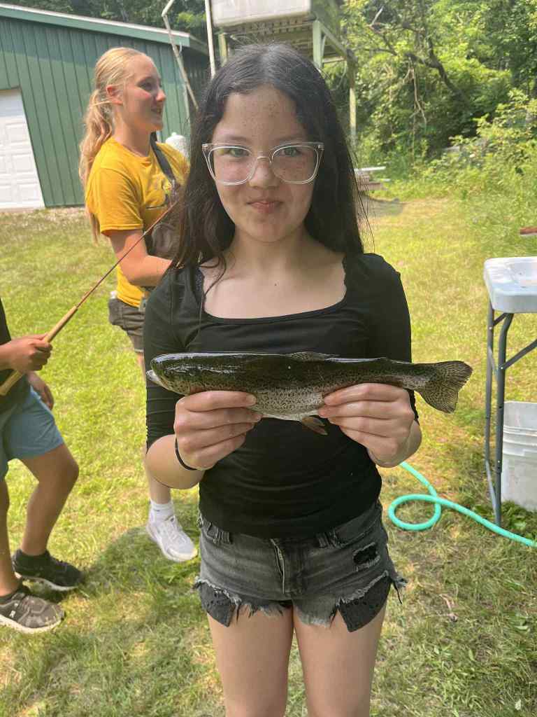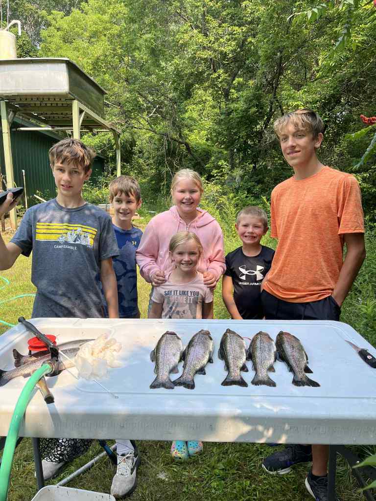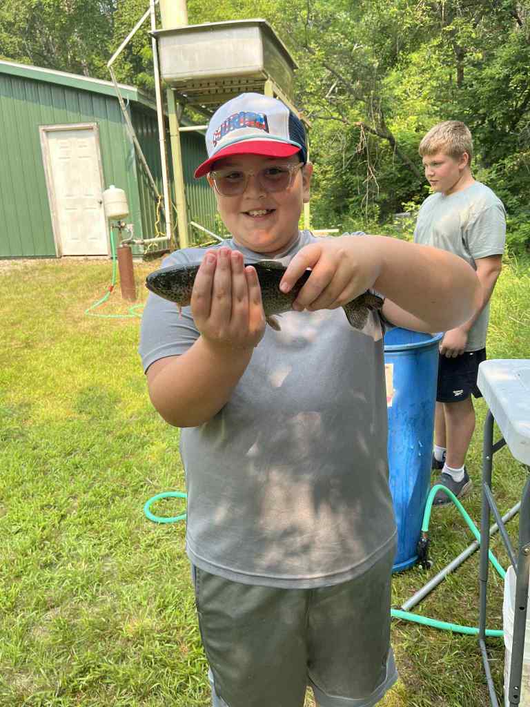 The kids were able to go fishing in the trout tank and bring home the fish they caught.