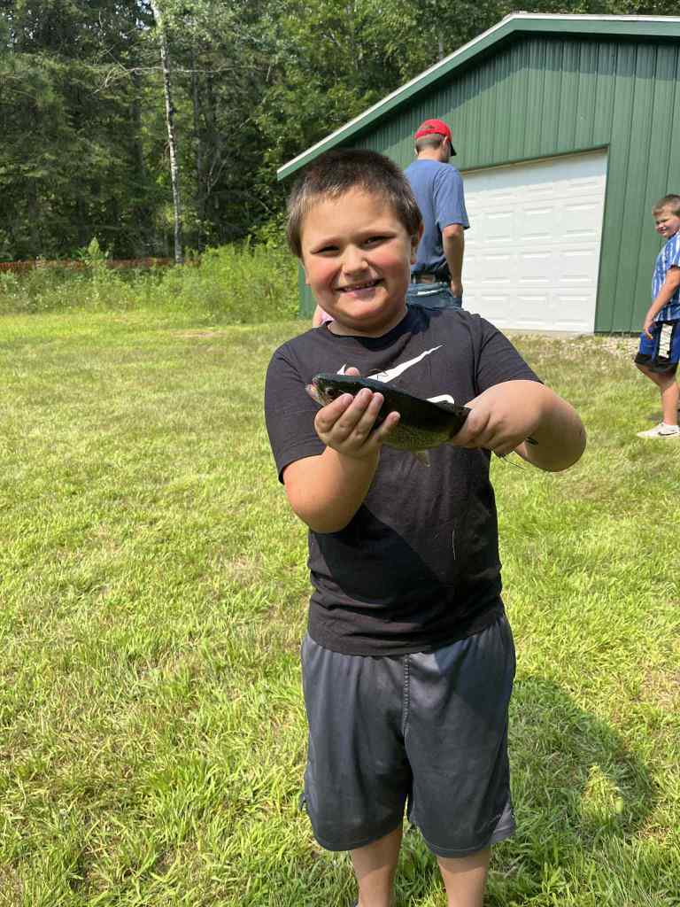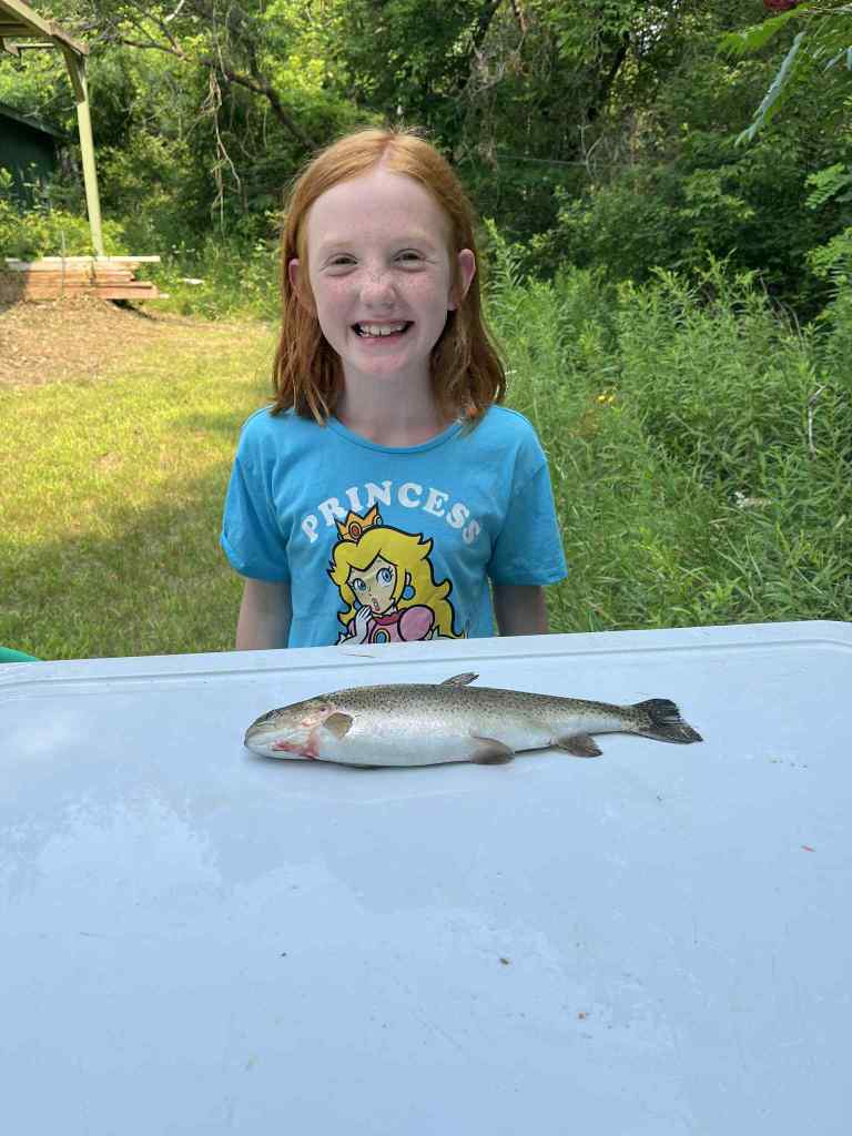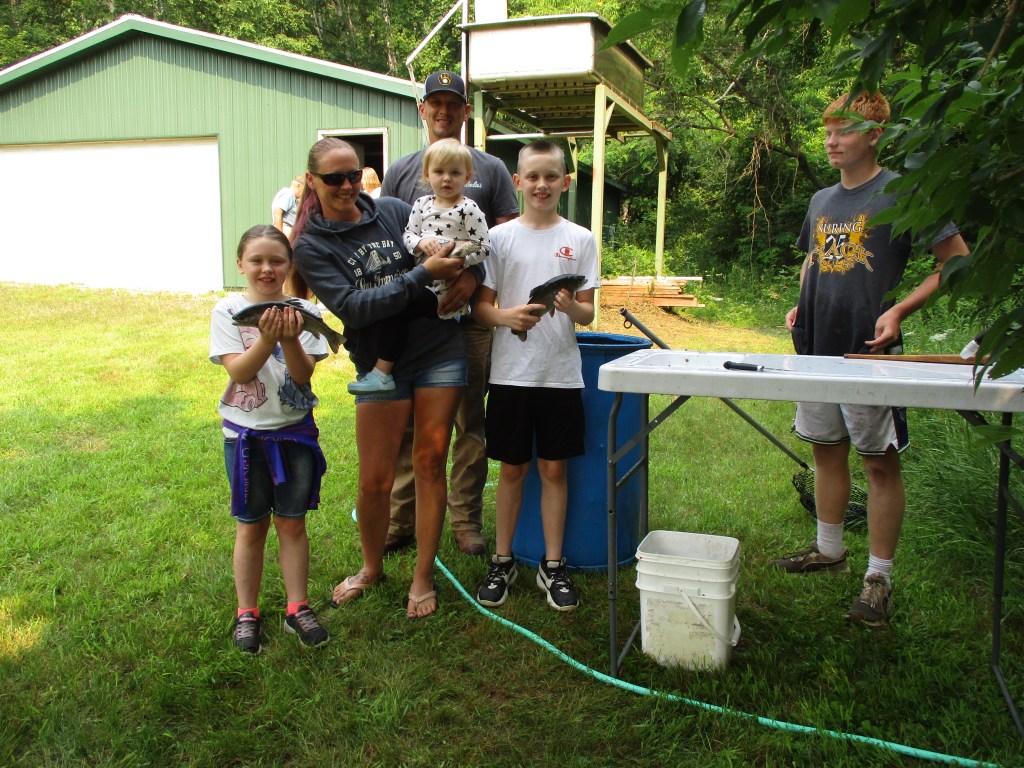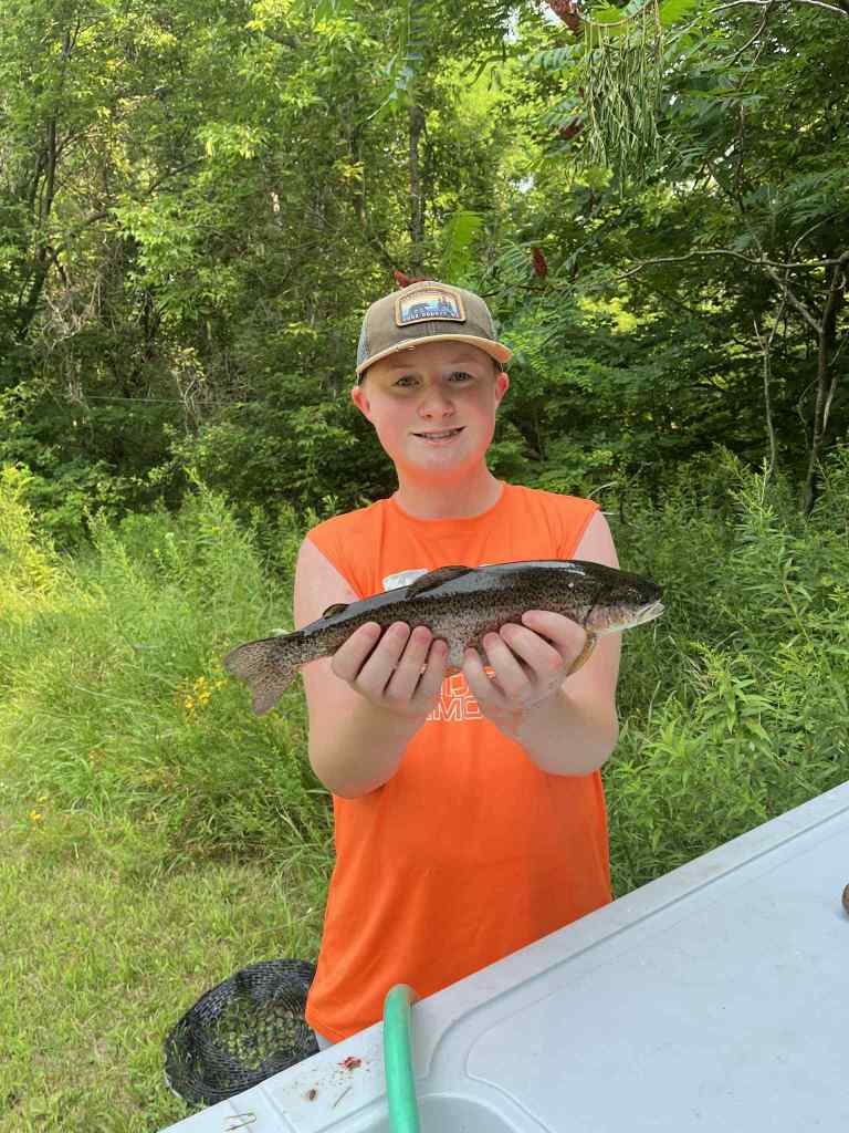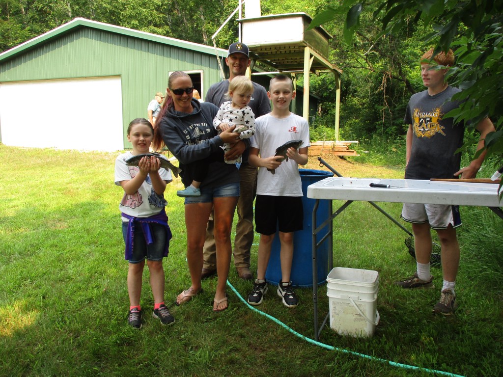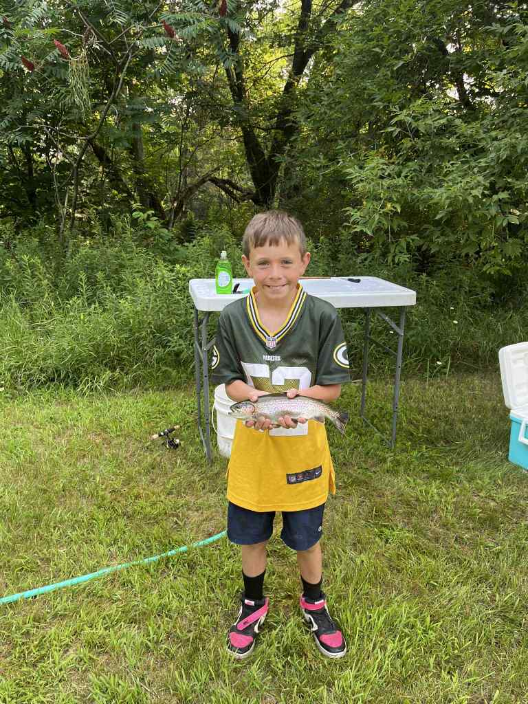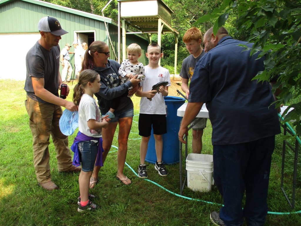 The kids were able to go fishing in the trout tank and bring home the fish they caught.