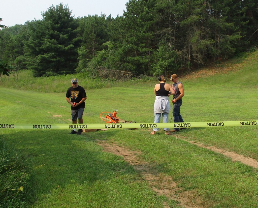 The day started with high winds and thick, cloudy skies, but after everything was set up and ready, people arrived and the sausage shoot began! Gary Hischke was cooking hamburgers and brats, Lennie Madison was setting up things with Jay Tousey and Kurt Bruegl. Bill Madison and Gary H. took care of selling the tickets for the shoot and registering the winners.