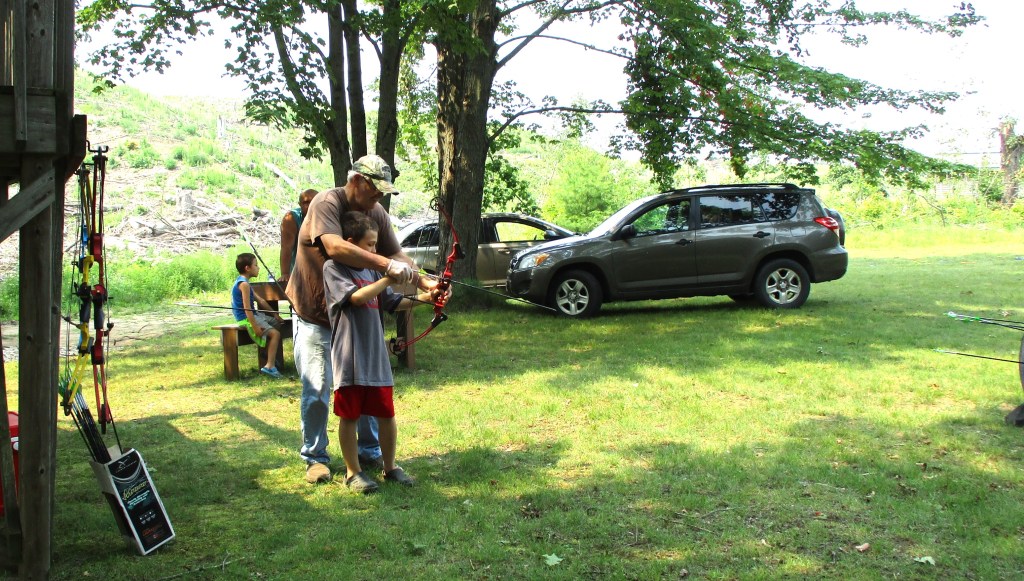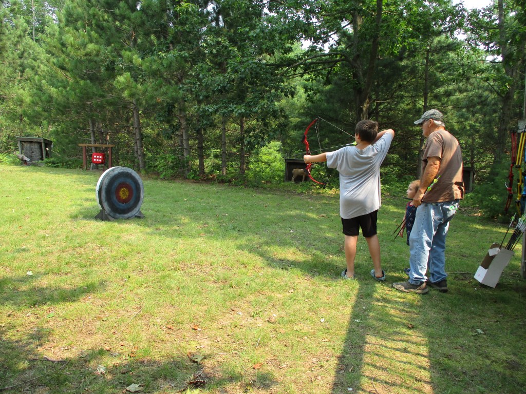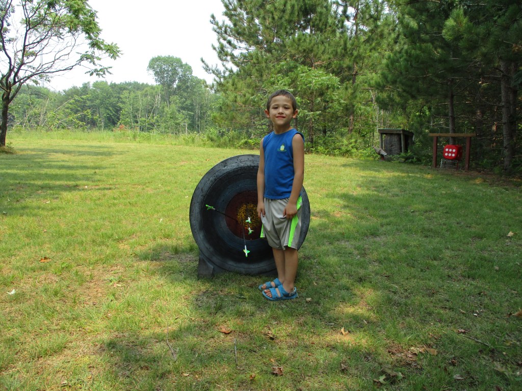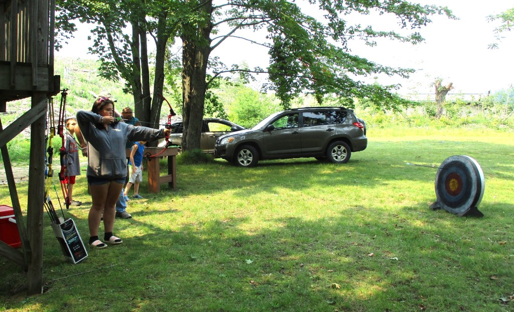 The archery range was very busy with kids learning how to shoot a bow and arrow at a target. Look at all of those bullseyes!!